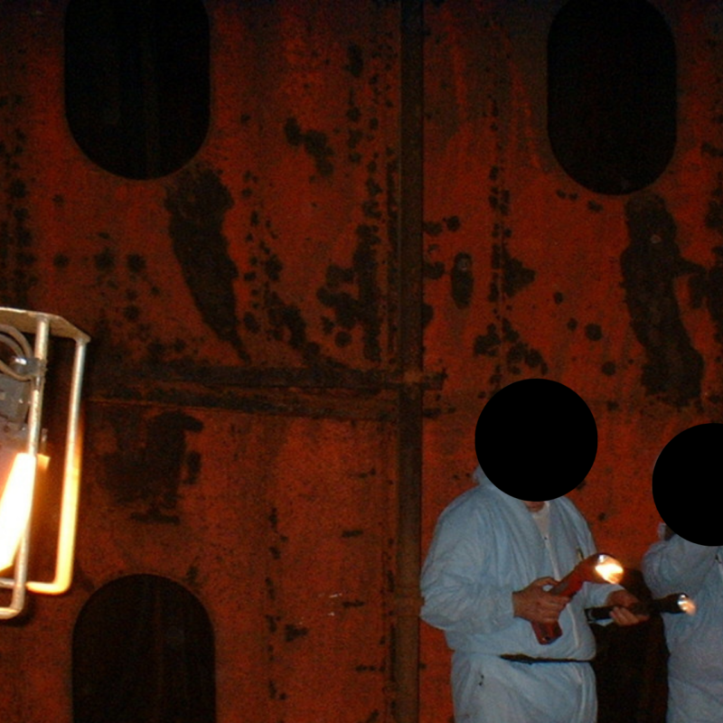 - Surface preparation conducted using abrasive blasting and mechanical grinding for restricted areas.