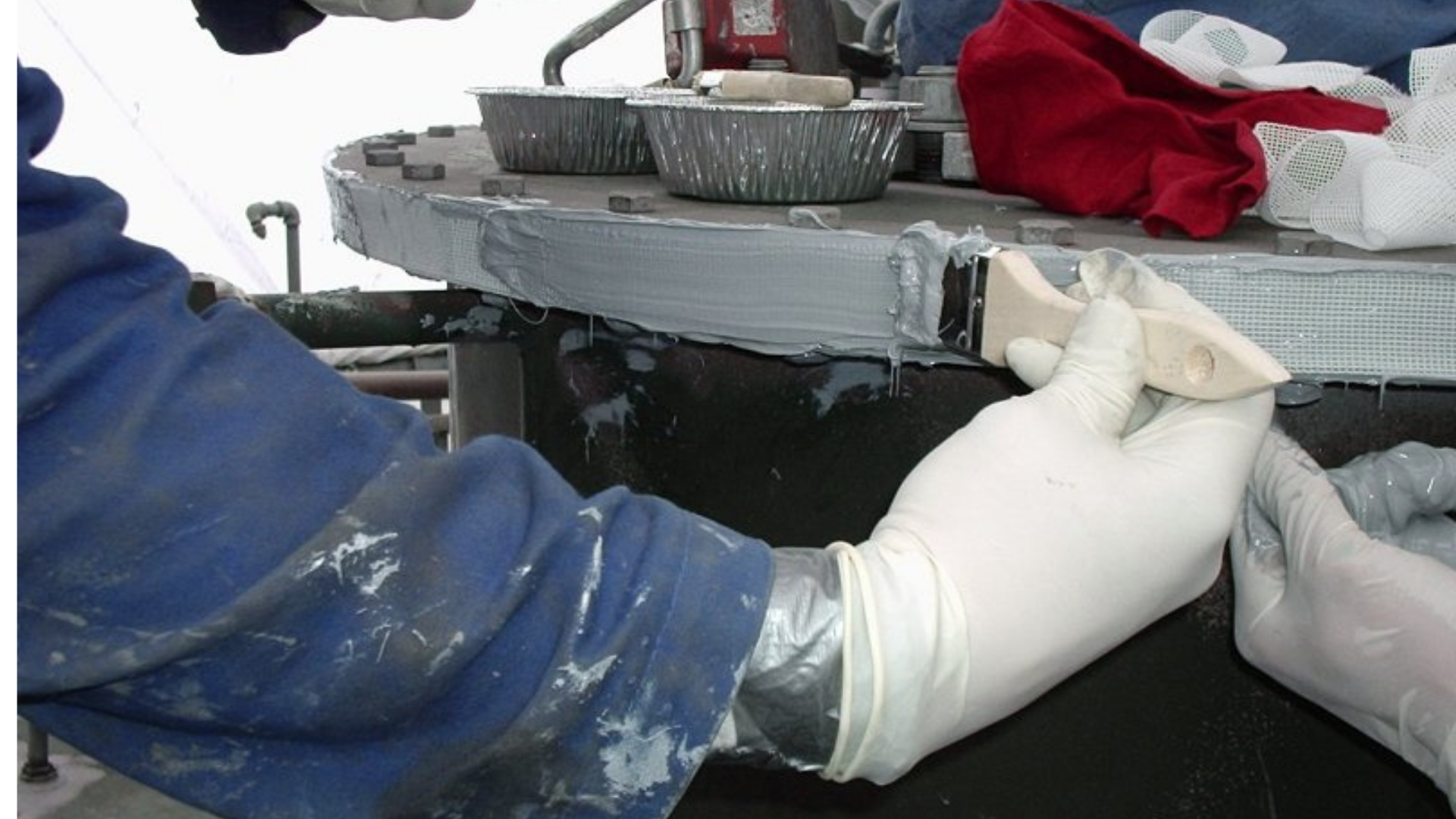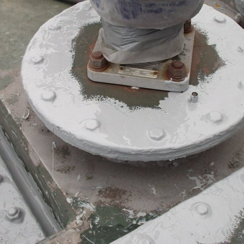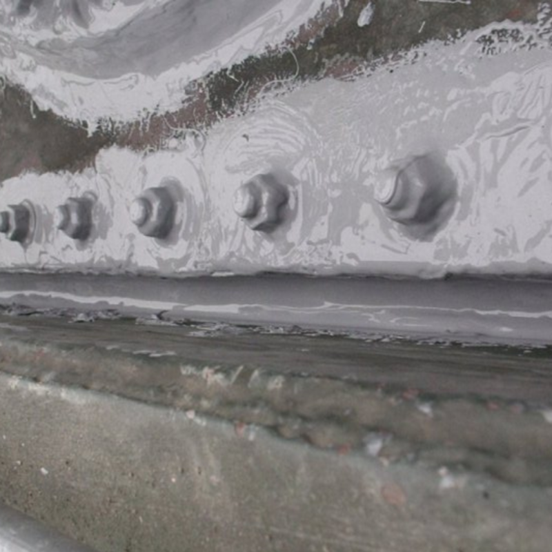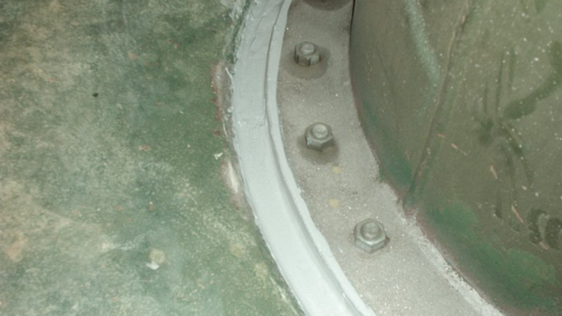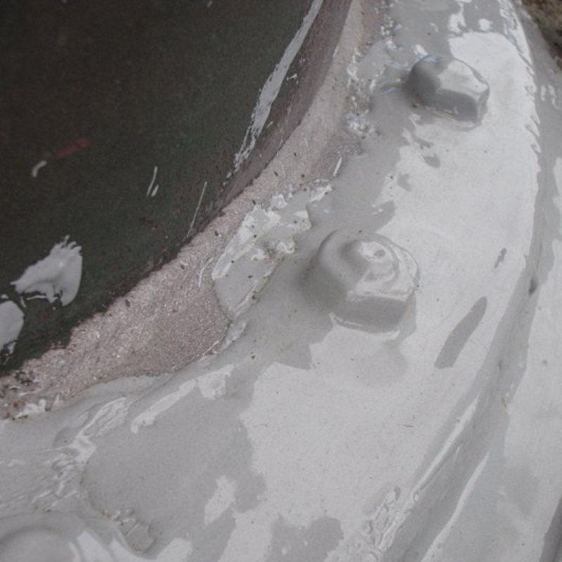 The steel substrate was abrasive blasted to SA2.5 with a 75-micron profile, following ISO 8501/4 SA2.5 (SSPC SP10/NACE 2) standards, to ensure proper surface preparation and optimal adhesion. Bolt heads, flange joints, and other mating surfaces were precisely stripe coated with 104 Metal Repair Fluid XF, applied using a brush and plastic applicator to create a uniform base layer.
