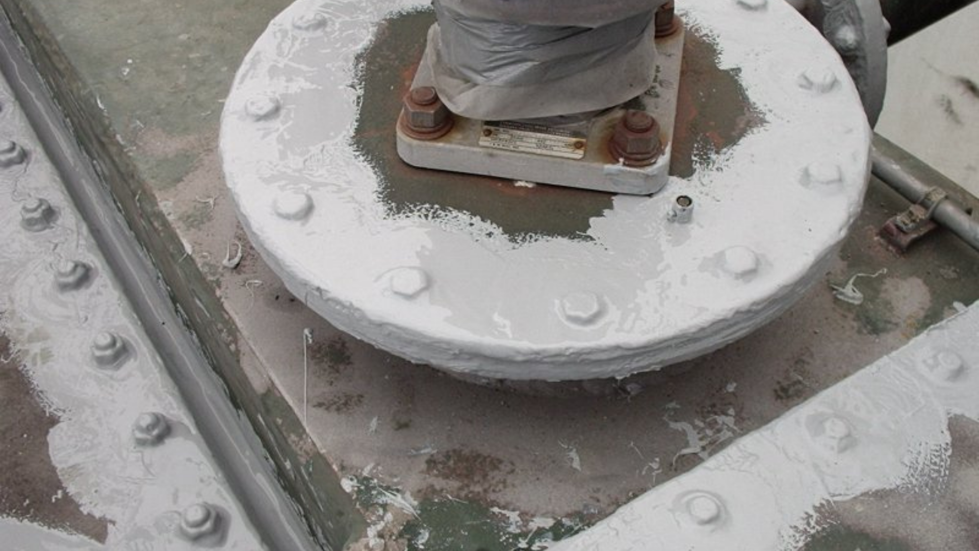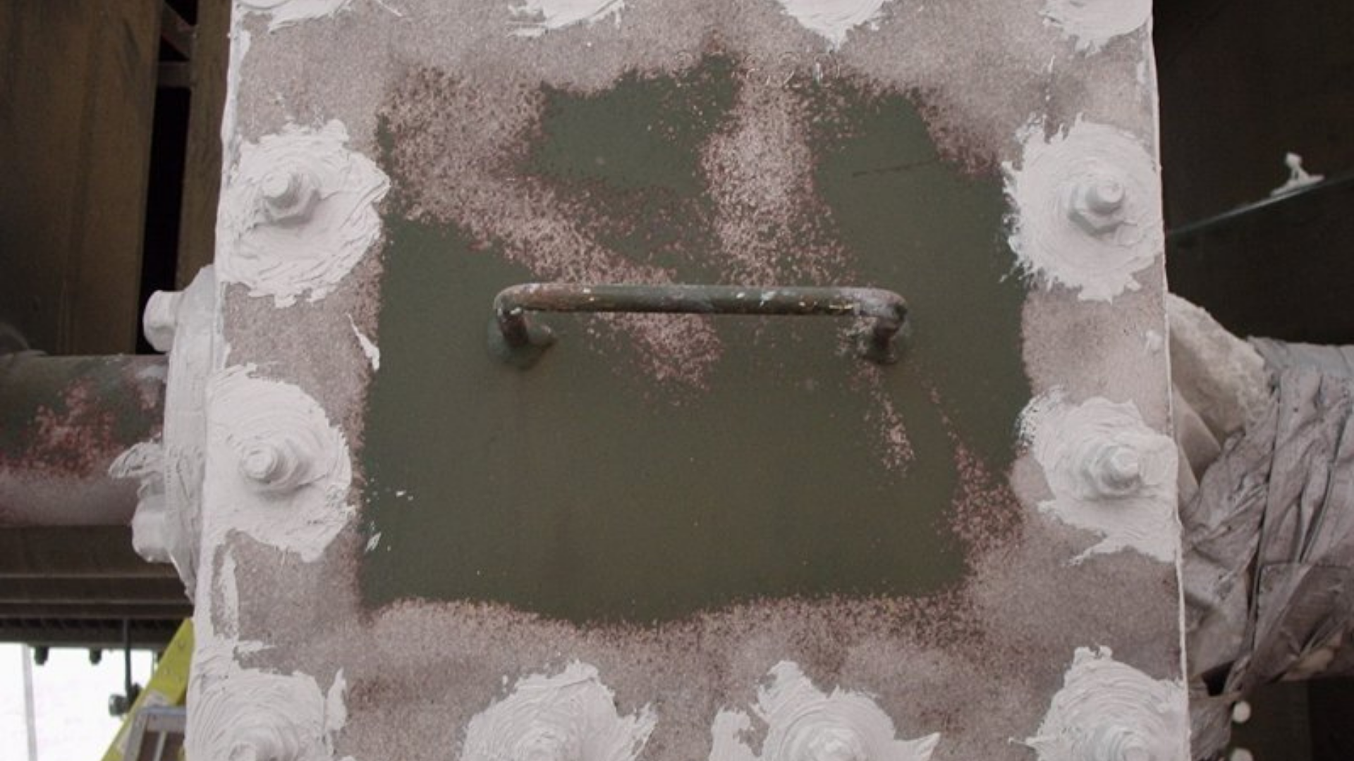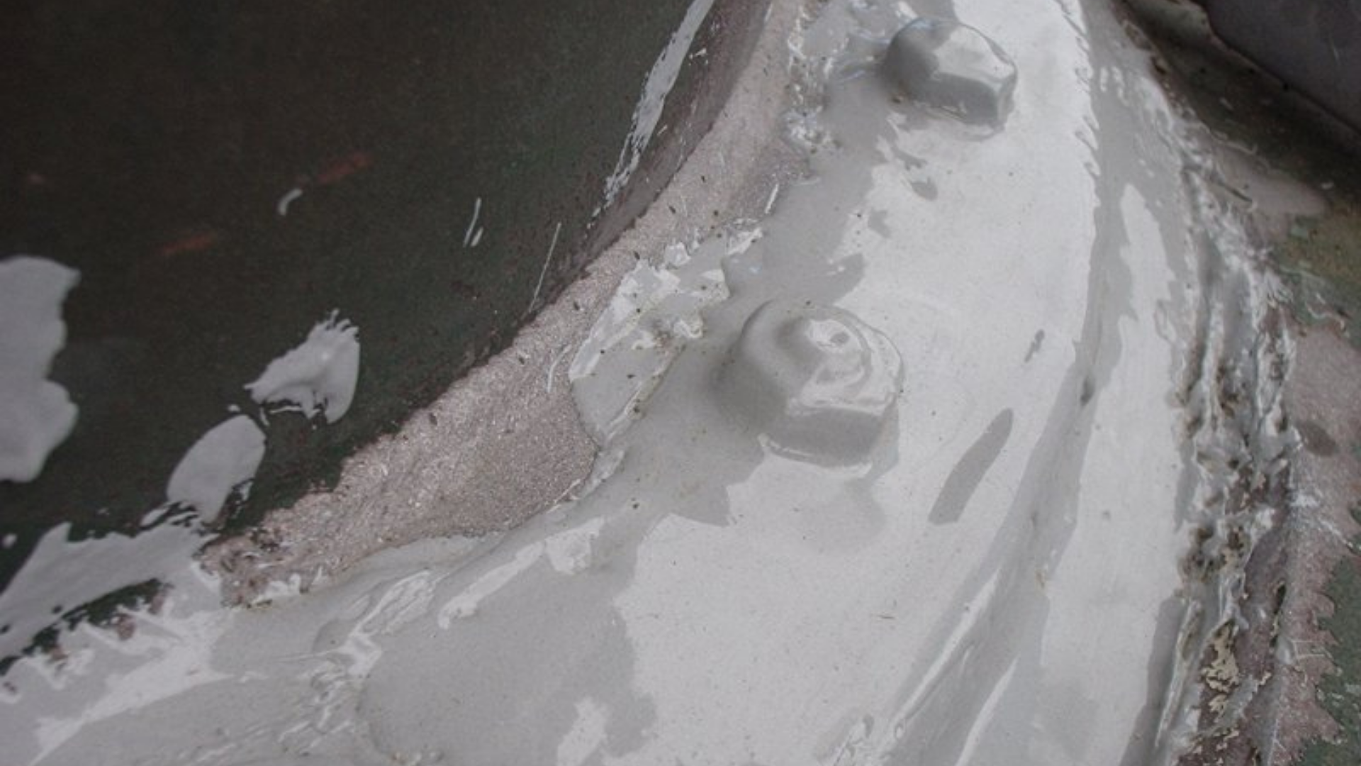 The steel substrate was abrasive blasted to SA2.5 with a 75-micron profile, following ISO 8501/4 SA2.5 (SSPC SP10/NACE 2) standards, to ensure proper surface preparation and optimal adhesion. Bolt heads, flange joints, and other mating surfaces were precisely stripe coated with 104 Metal Repair Fluid XF, applied using a brush and plastic applicator to create a uniform base layer.