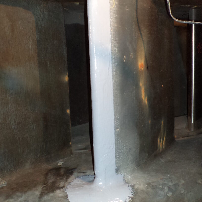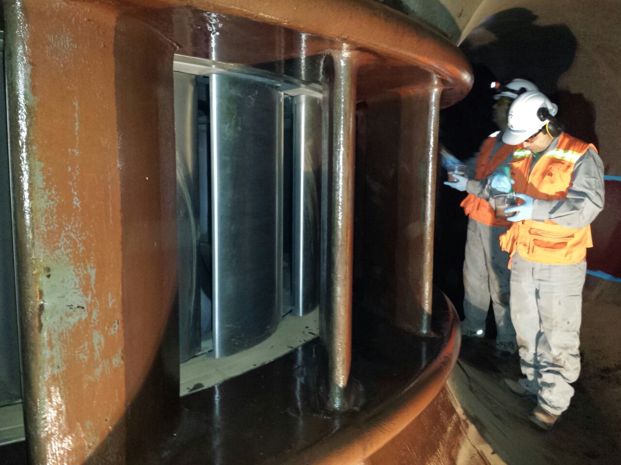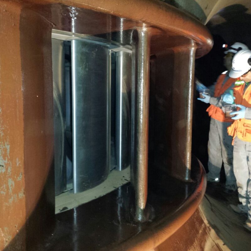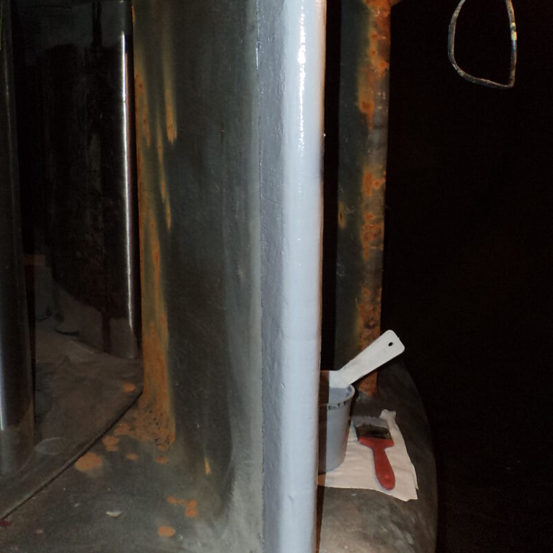 To prepare the turbine blades for repair, the surface was abrasive blast cleaned to SA2.5, meeting the ISO 8501/4 and SSPC SP10/NACE 2 standards with a 75-micron angular profile. This preparation ensured a clean and textured surface for the repair products. Damaged areas along the leading edges were filled and reshaped using 101 Metal Repair Paste to restore the blade’s original contour. For long term protection, two coats of 203 Super Flow were applied by brush, resulting in a nominal total dry film thickness of 500 microns. This final coating created a smooth, wear resistant surface, designed to withstand the operational stresses and corrosive conditions.