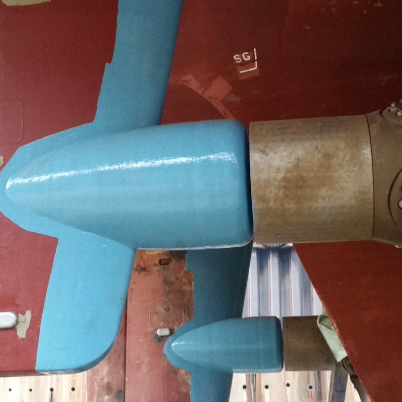 - Overcoating the entire rudder pod with two layers of 203 Super Flow for durable protection.