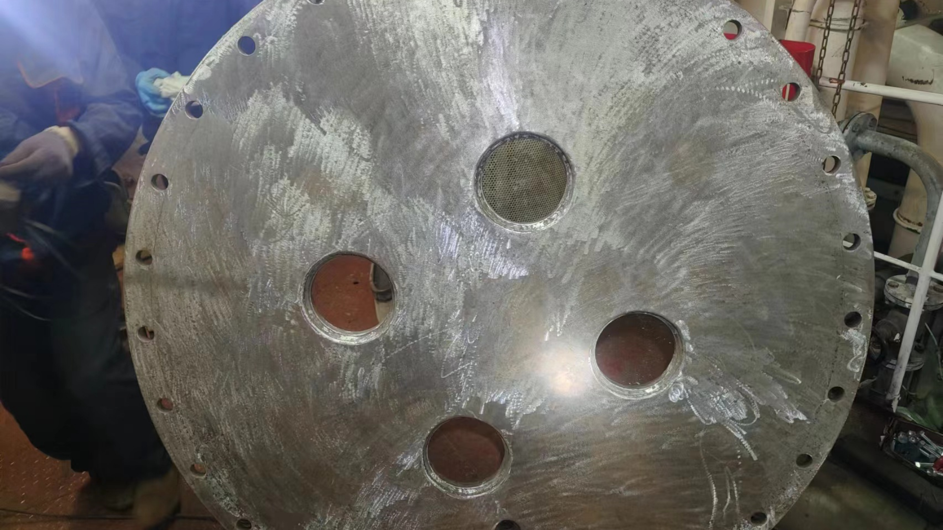 A series of steel salt water filters aboard a container vessel were suffering from significant internal corrosion due to prolonged exposure to high chloride process water. The client needed to refurbish the salt water filter in situ with a solution that would not only arrest corrosion but also withstand erosion and impact from high levels of suspended solids. Additionally, elevated humidity during application posed challenges for traditional coating systems, prompting the need for a moisture tolerant material.