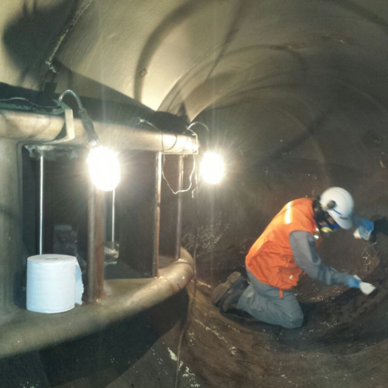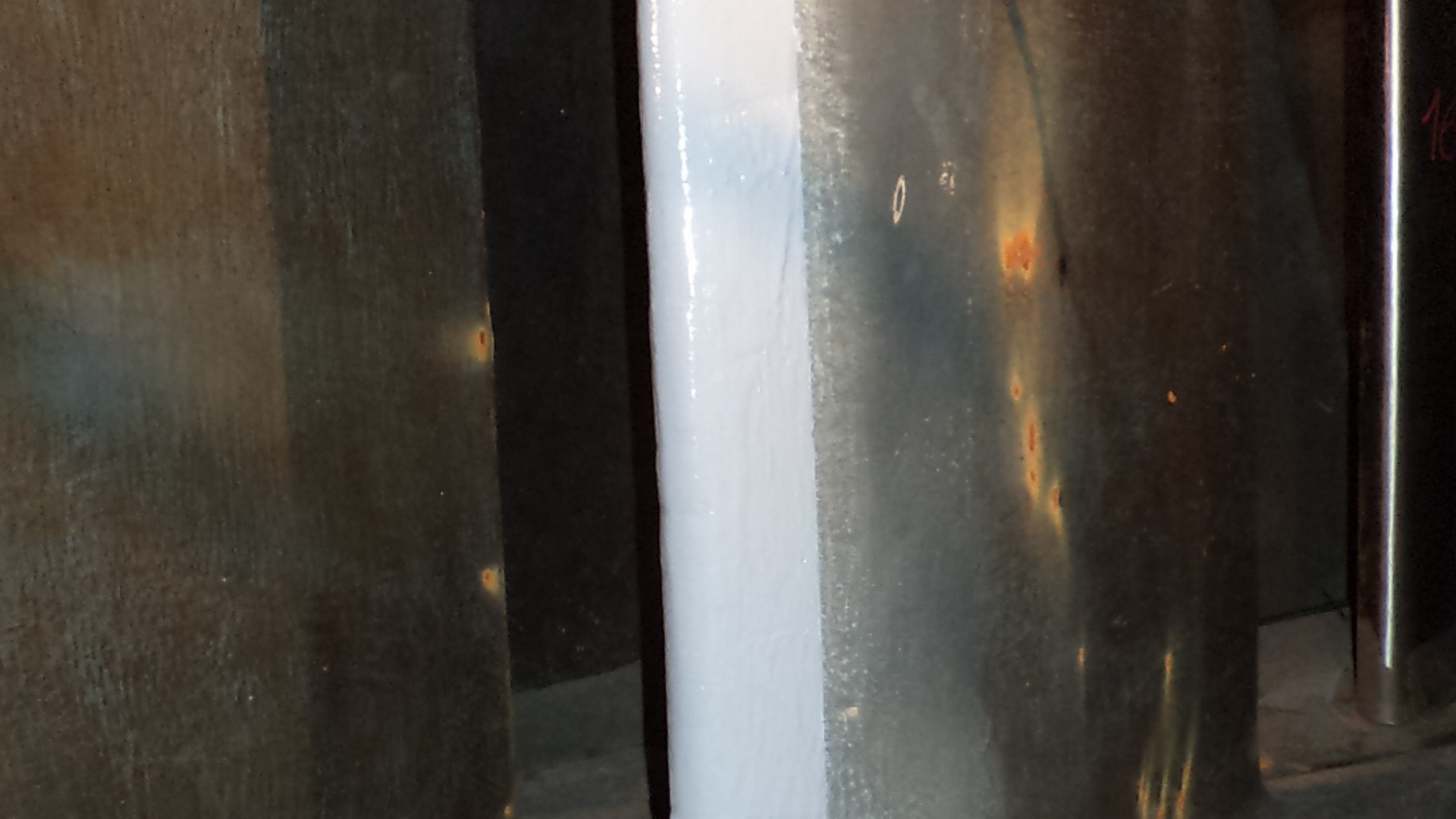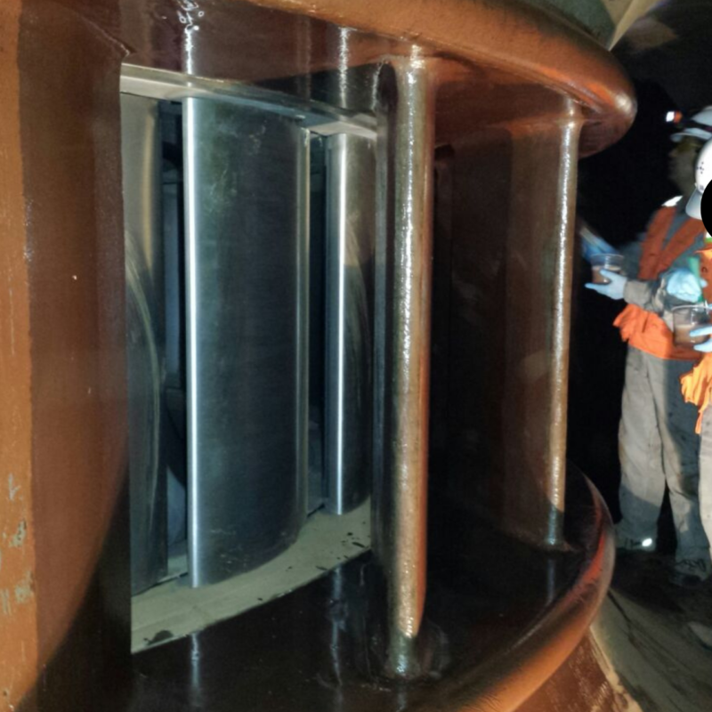 To prepare the turbine blades for repair, the surface was abrasive blast cleaned to SA2.5, meeting the ISO 8501/4 and SSPC SP10/NACE 2 standards with a 75-micron angular profile. This preparation ensured a clean and textured surface for the repair products. Damaged areas along the leading edges were filled and reshaped using 101 Metal Repair Paste to restore the blade’s original contour. For long term protection, two coats of 203 Super Flow were applied by brush, resulting in a nominal total dry film thickness of 500 microns. This final coating created a smooth, wear resistant surface, designed to withstand the operational stresses and corrosive conditions.